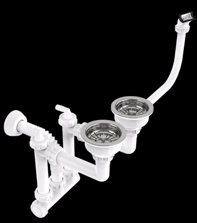 Multi-Purpose Compact Double-Bowl Fancy Sink Siphon with Dual Outlets & Tray Overflow – Model K-514